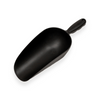 Pelle multifonction en plastique, idéale comme pelle à farine ou pelle à aliments. Ce modèle rond noir offre une longueur totale de 33 cm, avec une poignée ergonomique de 10 cm et un œillet de suspension pratique. Le godet mesure 23 cm et s’élargit de 8 cm à l’avant à 11 cm à l’arrière.
